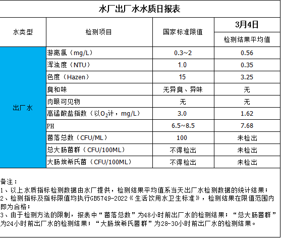 水廠出廠水水質(zhì)日?qǐng)?bào)表(2025-3-4)
