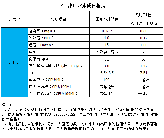水廠出廠水水質(zhì)日報表(2025-9-21)