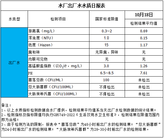 水廠出廠水水質(zhì)日報表(2025-10-18)
