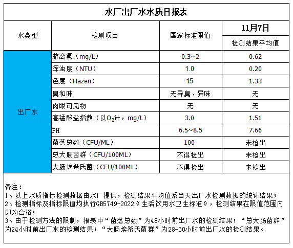 水廠出廠水水質(zhì)日報(bào)表(2025-11-7)