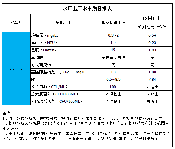 出廠水水質(zhì)日?qǐng)?bào)表(2025-12-11)