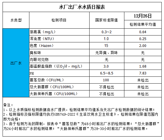 出廠水水質(zhì)日?qǐng)?bào)表(2025-12-26)