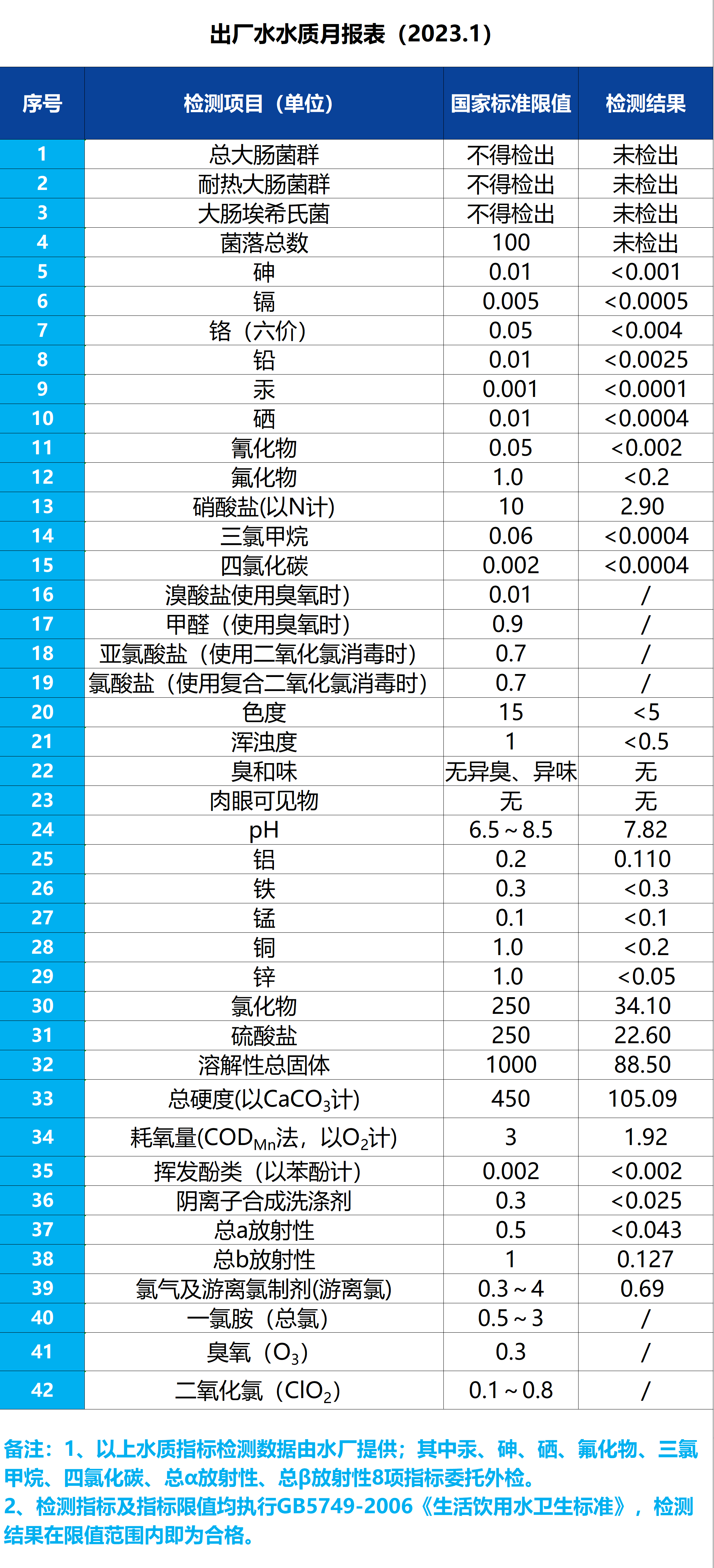 出廠水水質(zhì)月報(bào)表(2023.1)