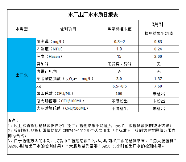 水廠出廠水水質(zhì)日?qǐng)?bào)表(2024-2-7)