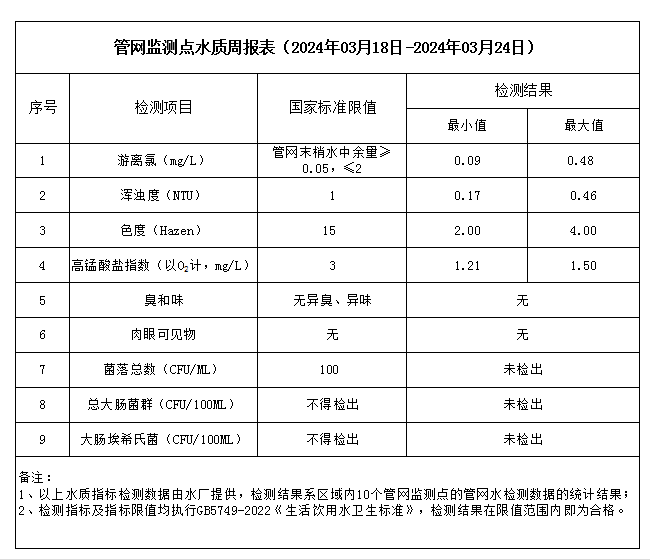 管網(wǎng)監(jiān)測(cè)點(diǎn)水質(zhì)周報(bào)表(2024年03月25日-2024年03月31日)