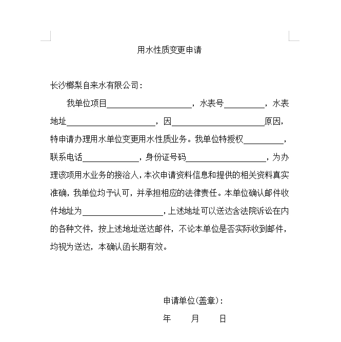 單位用戶用水性質變更